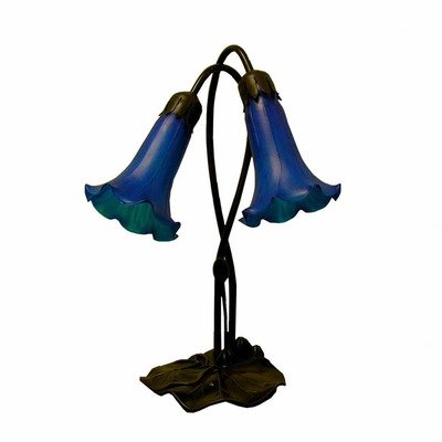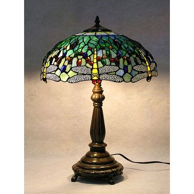 WHT006 Handcrafted using the same techniques that were developed by Louis Comfort Tiffany in the early 1900s. Tiffany-style Blue Dragonfly table lamp is sure to brighten your home d cor. Elegant lamp is sure to dress up any room in your home or office. Features: -Table lamp. -Material: Glass / Metal / Resin. -Vivid colors of blue and more glass shade. -Shade contains 441 hand-cut pieces of stained glass and 128 cabochons. -Each wrapped in fine copper foil. -Dragonfly design. -Accommodates: 2 x 60W bulbs (not included).